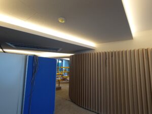 内装業者さんの作業に合わせて電気の工事を進めていきます。