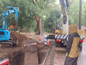 公園内の園路灯の建て替え工事です。