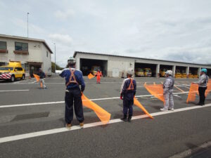 今回は誘導の際に使う旗の振り方や発煙筒の使い方を教わりました。